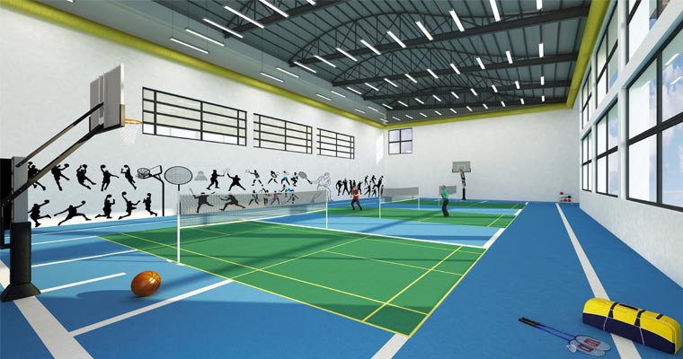 The Sports Hall was designed in such a way that it needs minimum Artificial Lighting and ventilation during the Day Time. The superb Design ensures a balance between functionality(Eg. Direct Sunlight would create a Glare that would hamper in the player Experience in games like Badminton and Table Tennis, Maintaining 300 Lux Lighting at Floor level as per Standards would require 12 COB lights of 400 Watts each. However the play of Indirect Lighting reduced the requirement of lights to 33% due to the use of Indirect Natural Lighting.