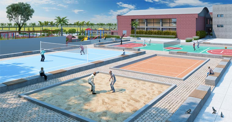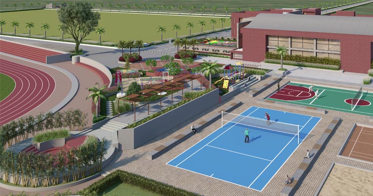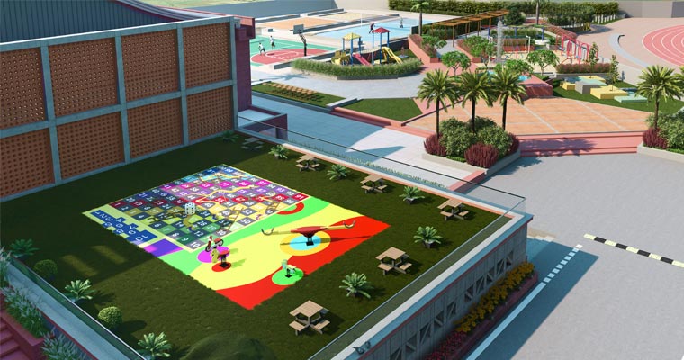 Ergonomically designed Landscape area which acts as a Learning-Scape for the students. Distinguished areas marked for Outdoor Learning and Reflection for approximately 300+ students in solitude, in small groups. Or Large Groups. A functional amphitheater for the students to study in their mandatory Daily Outdoor Class amidst nature. The child can spend their time in Reflection sitting amongst the trees or nearby the Fountain pondering over the endless possibilities that lie in front of them.